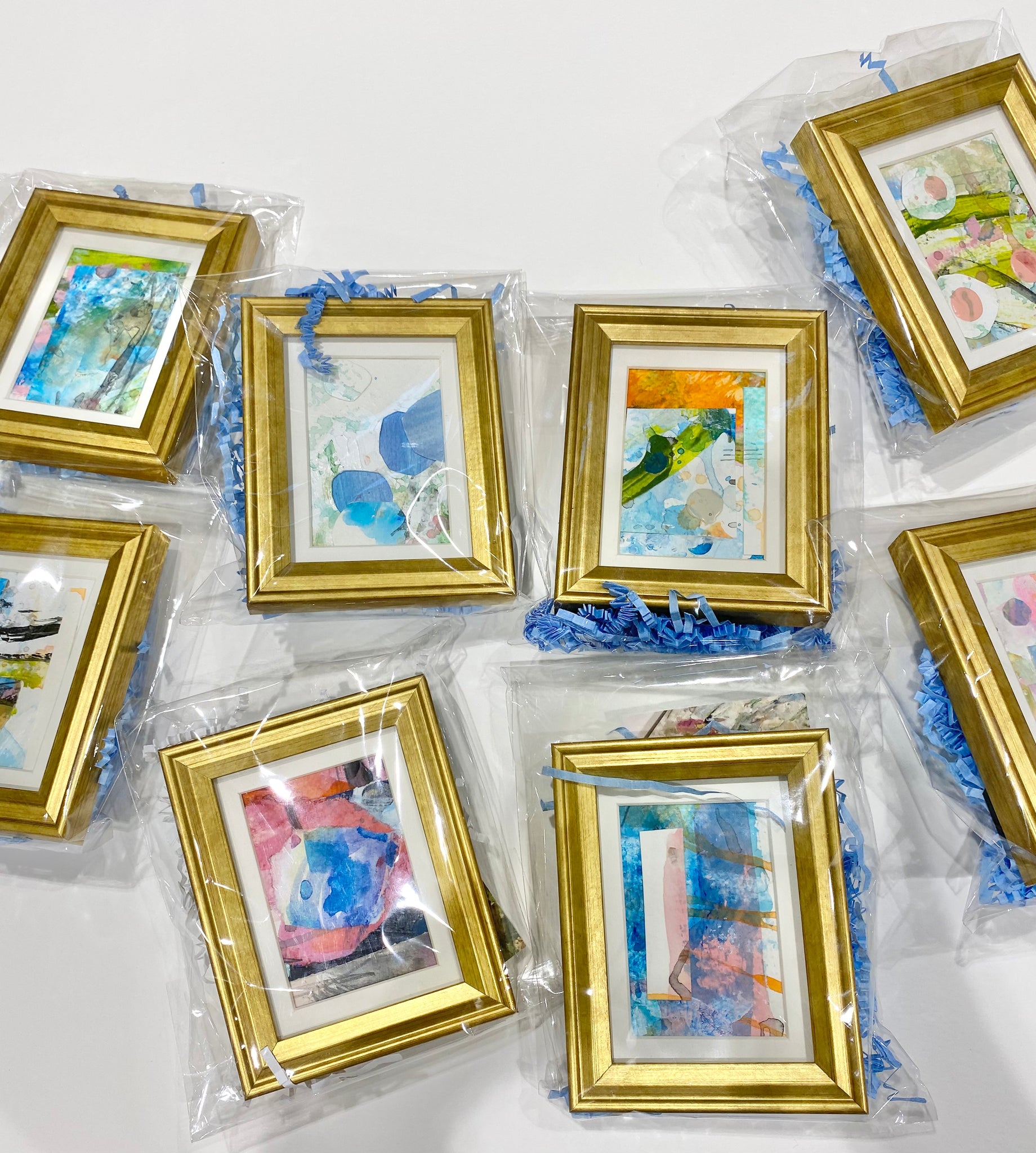 Original piece of collage art sitting pretty in a silver frame. Frame opening is 2 x 3 inches. Free shipping in the U.S.